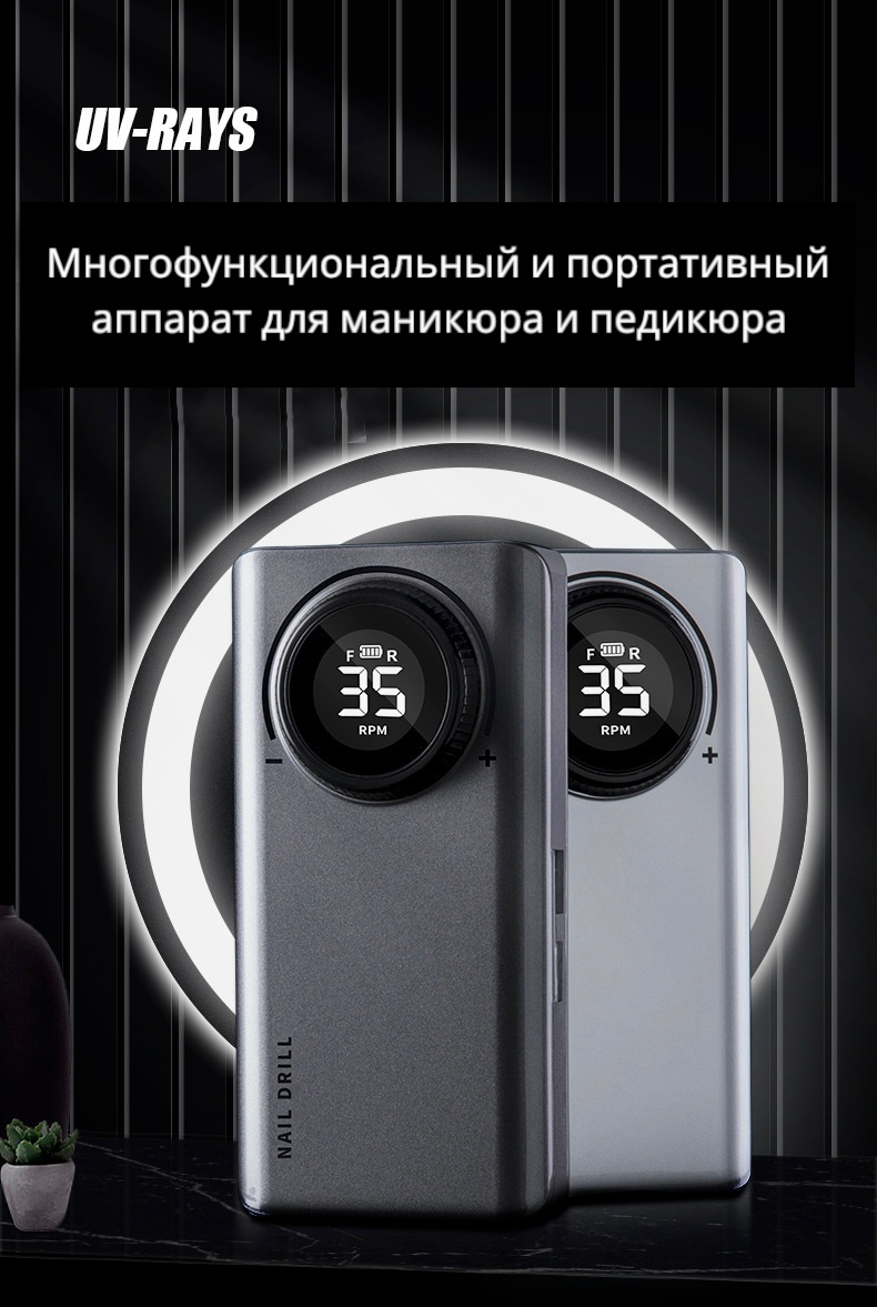 Аппарат для маникюра и педикюра 35000 оборотов беспроводной UV-201 серый