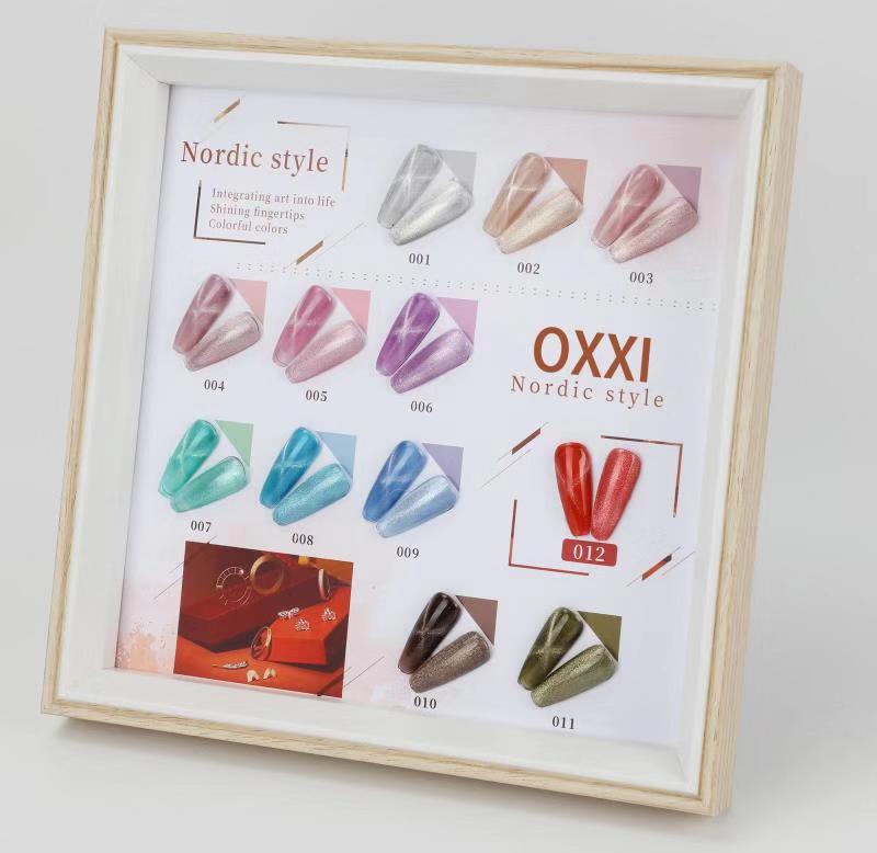 OXXI Хрустальный кошачий глаз, на картинках нанесен кошачий глаз серии Cats eye opal X-B. Гель лак невероятно красивый за счет своих переливов, которые меняются при разном освещении и под разным углом, плотная пигментация, отсутствие неприятного запаха, отличная полимеризация, выдержка к механическим воздействиям, стойкость цвета на протяжении долгого времени, не теряя первоначального вида. Время полимеризации в LED лампе 40 сек, в УФ - 1,2 минуты.