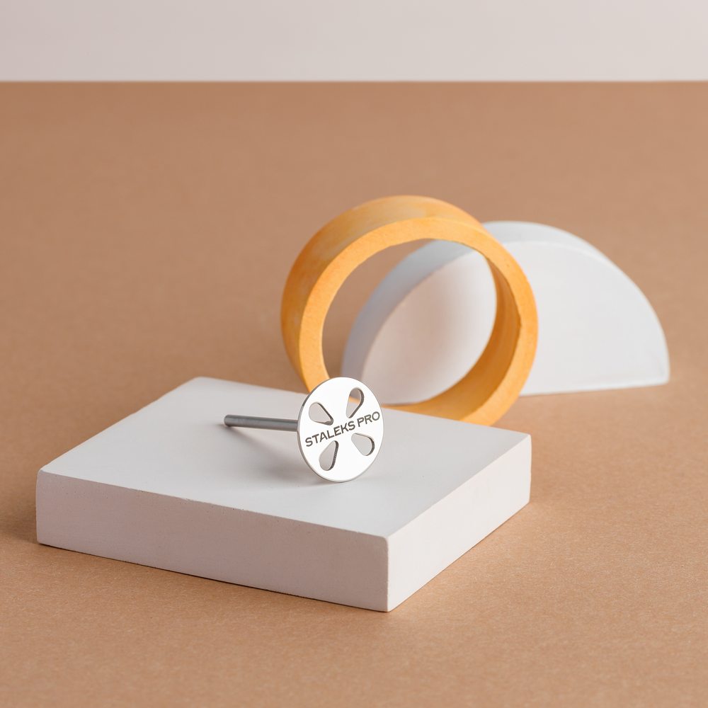 PDLset — уникальный пододиск с четырьмя каплевидными отверстиями в плоской шляпке. “Капли” уменьшают вес инструмента, сводят к минимуму риск разбить ручку фрезера. Также отверстия снижают нагрев стопы при обработке на высоких оборотах.
